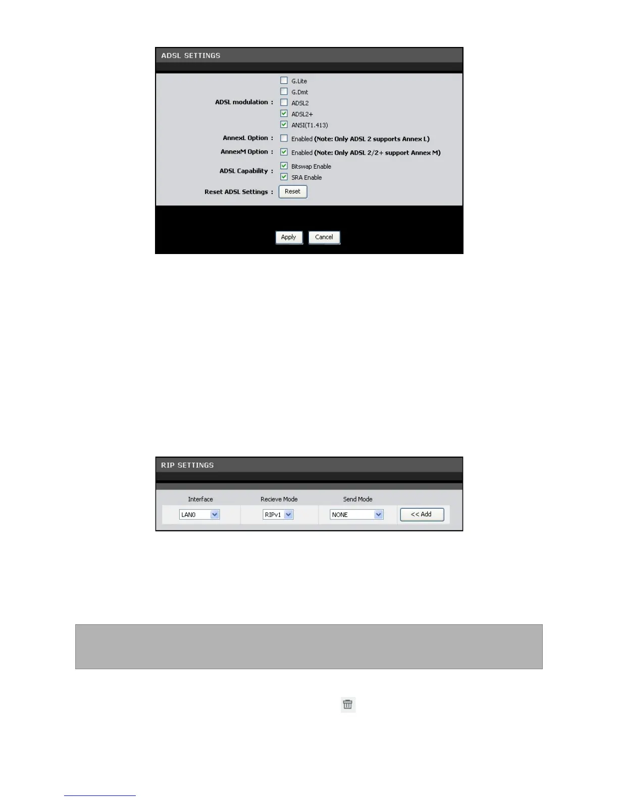 To delete an RIP setting, click the corresponding button.