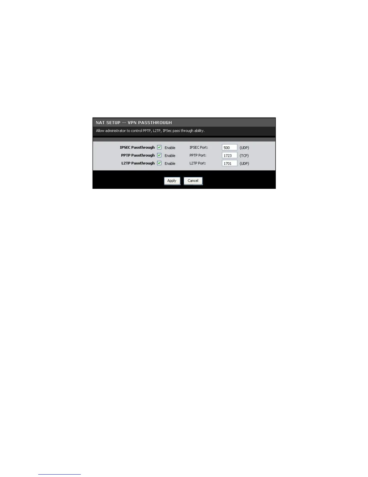To access the VPN Passthrough page, click Advanced > NAT > VPN Passthrough or