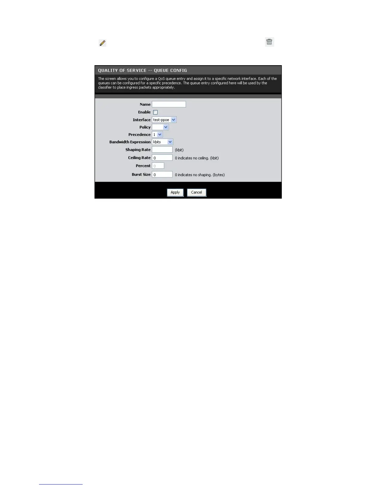 Click the Apply button to save the queue configuration or click the Cancel button to
