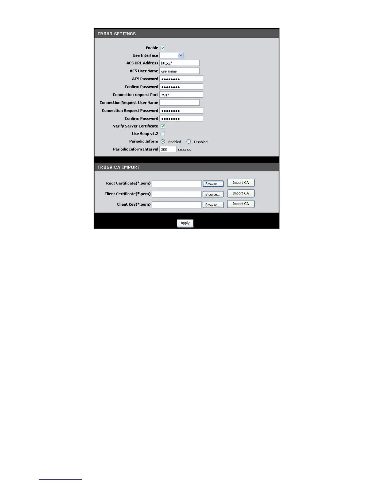 ACS URL Address — Enter the URL of the Auto-Configuration Server (ACS)