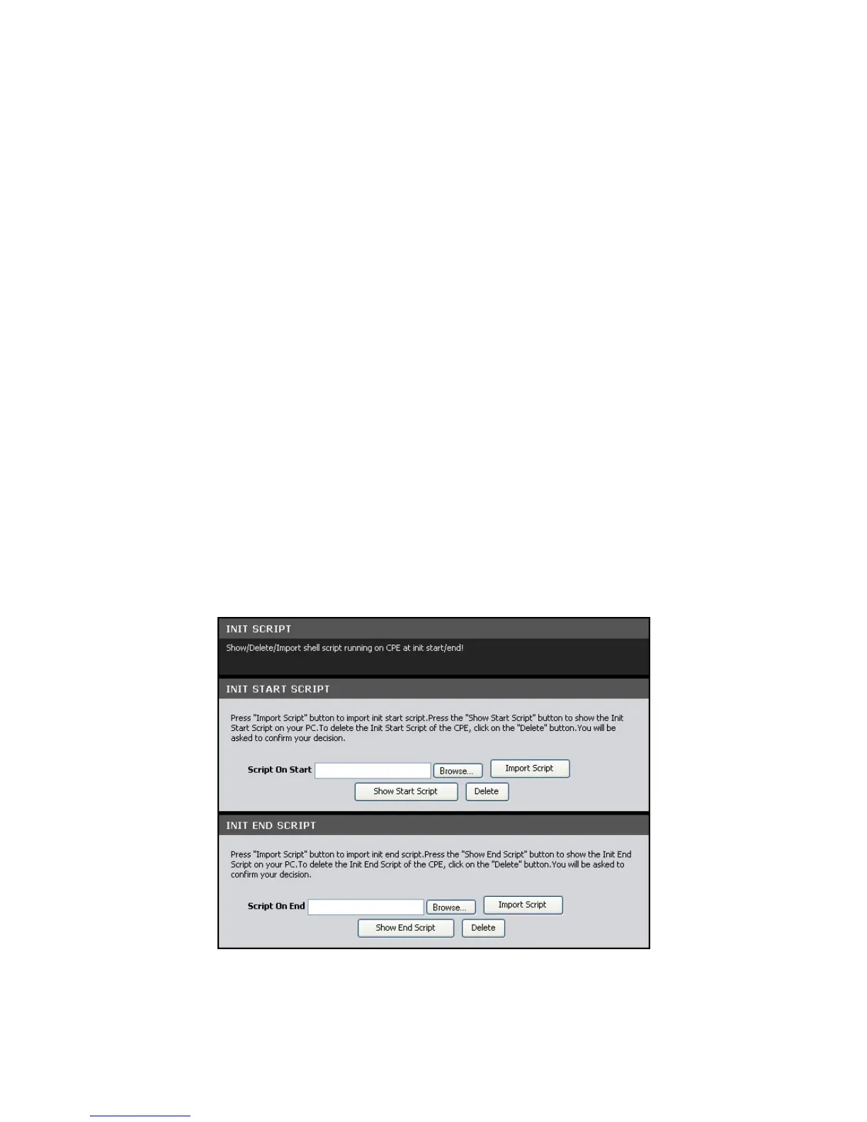 This page allows you to show, delete, and import initialization scripts running on