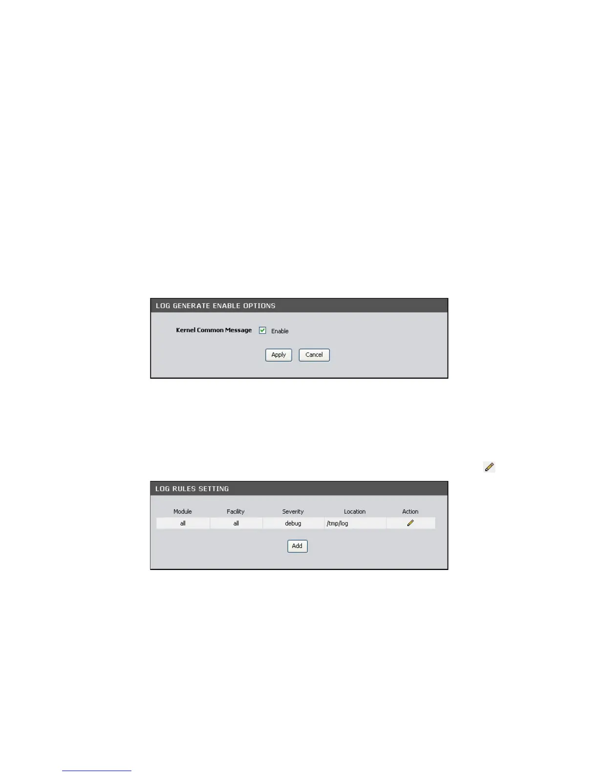 Kernel Common Message — Check this box to generate logs. Click the Apply button