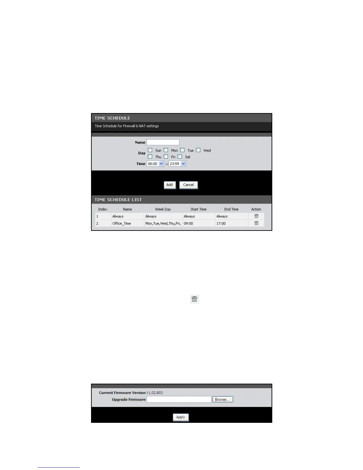 To access the Time Schedule page, click MAINTENANCE > Time Schedule.