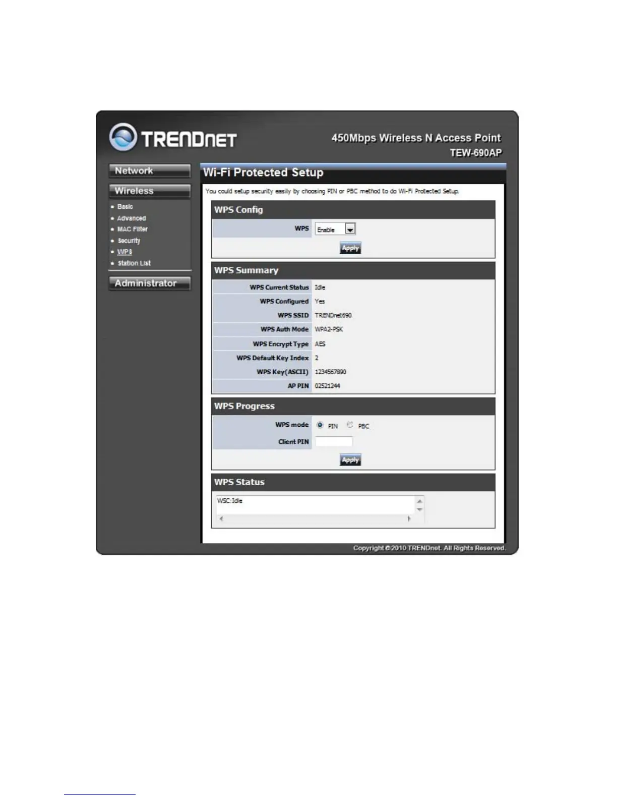 TRENDnet TEW-690AP - WPS Setup; WPS Mode Configuration