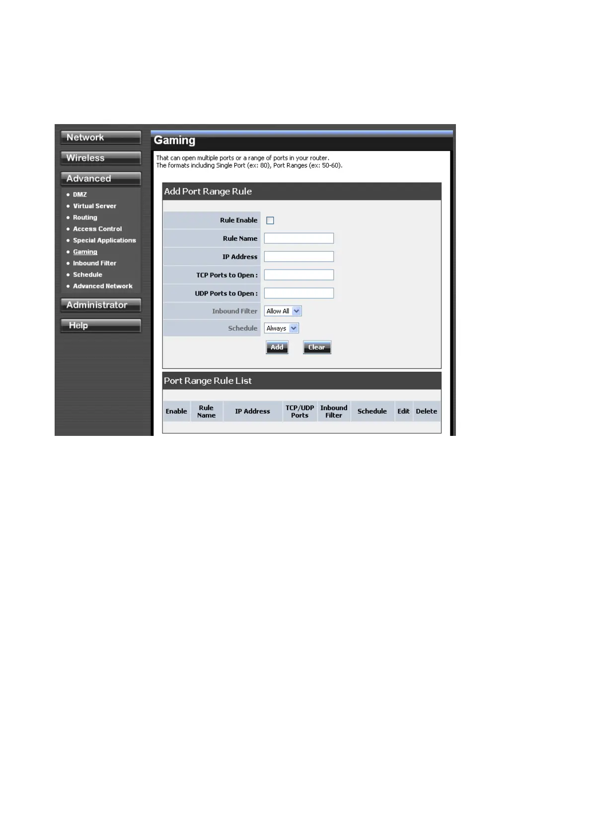 Use this section to add a Port Range Rule to the following list or to edit a rule already in the