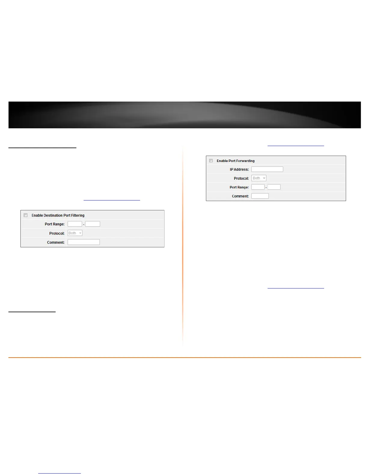 • Port Range: Enter the port number used to access the device from the Internet.