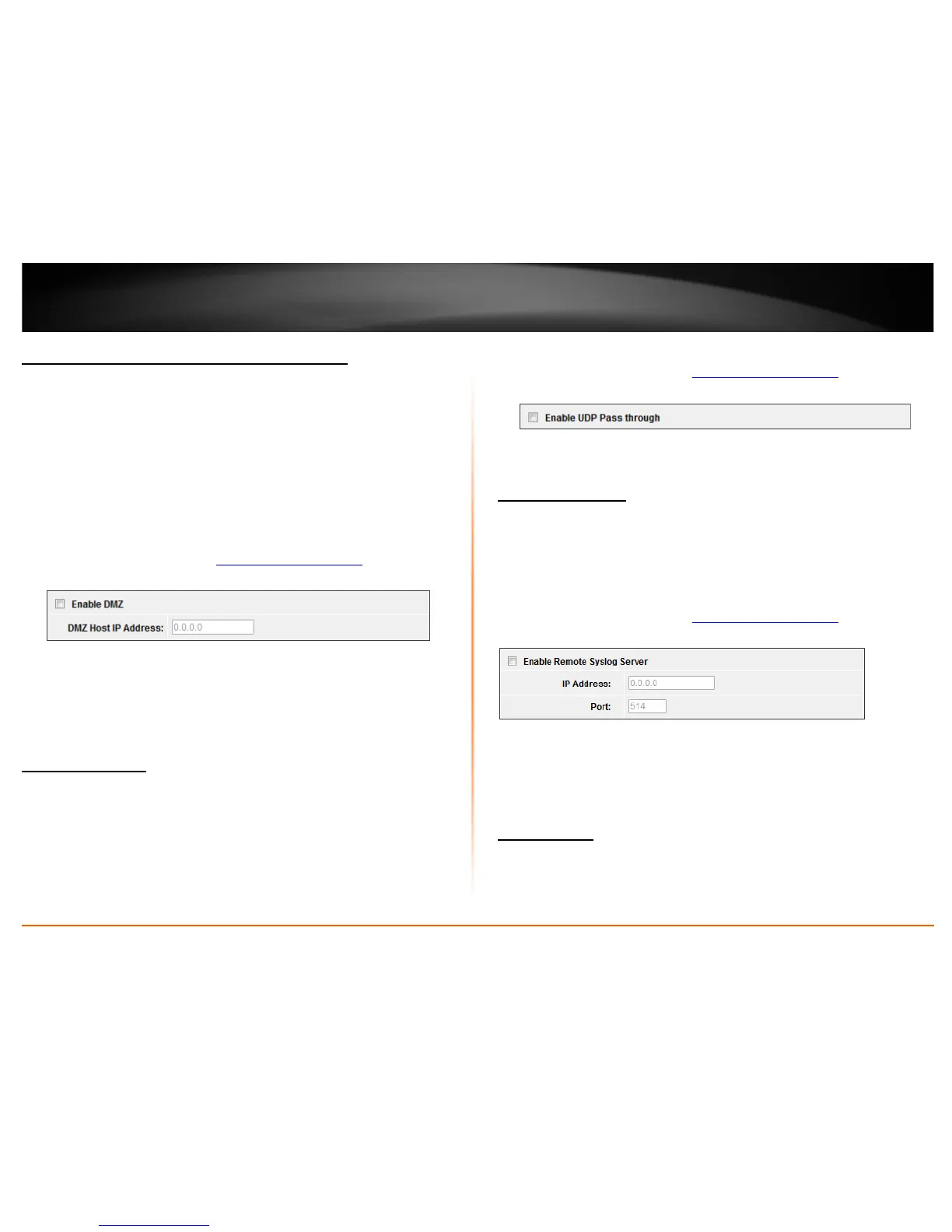 • Enable Remote Syslog Server: Check this option to enable DMZ