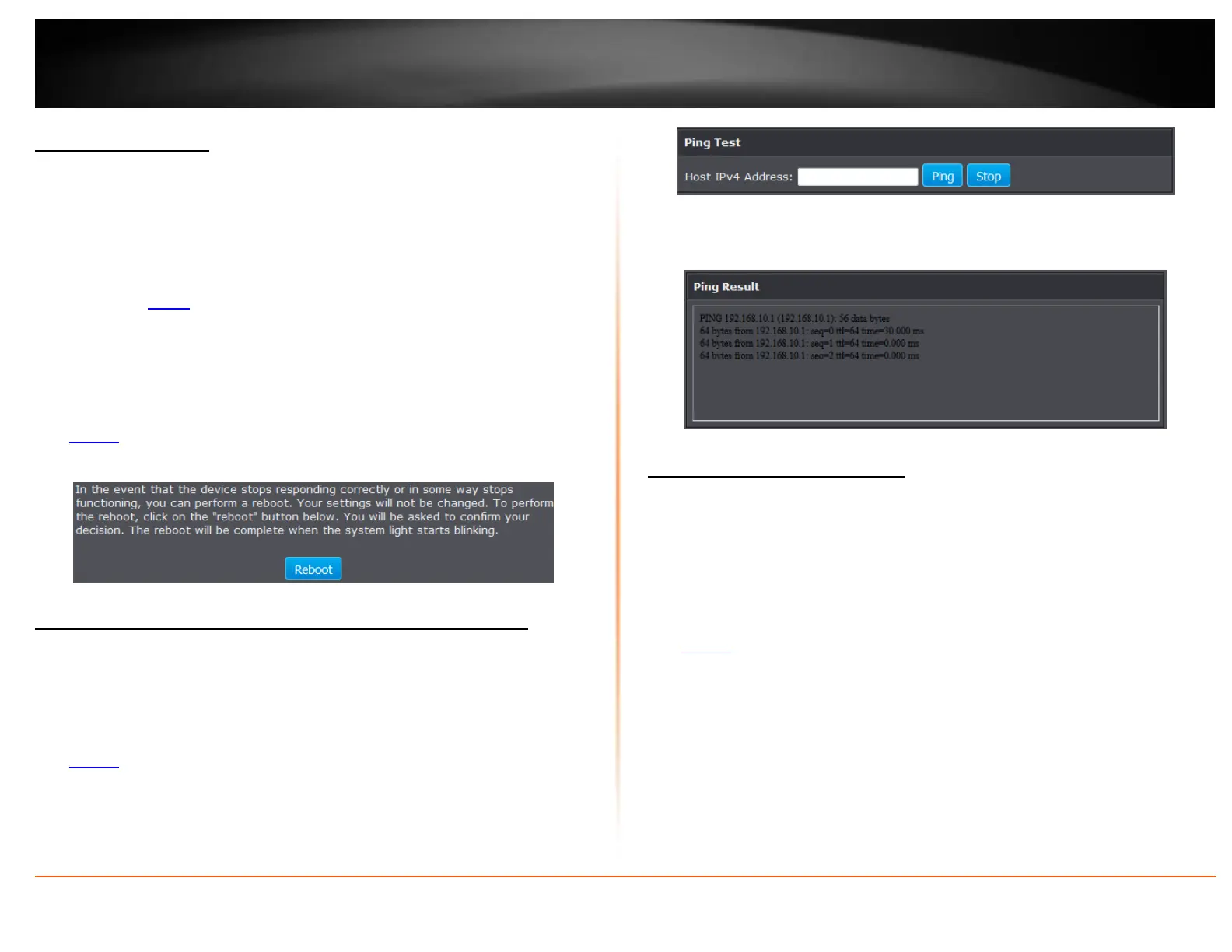 3. Click Reboot to restart the router. If prompted, click yes or OK.