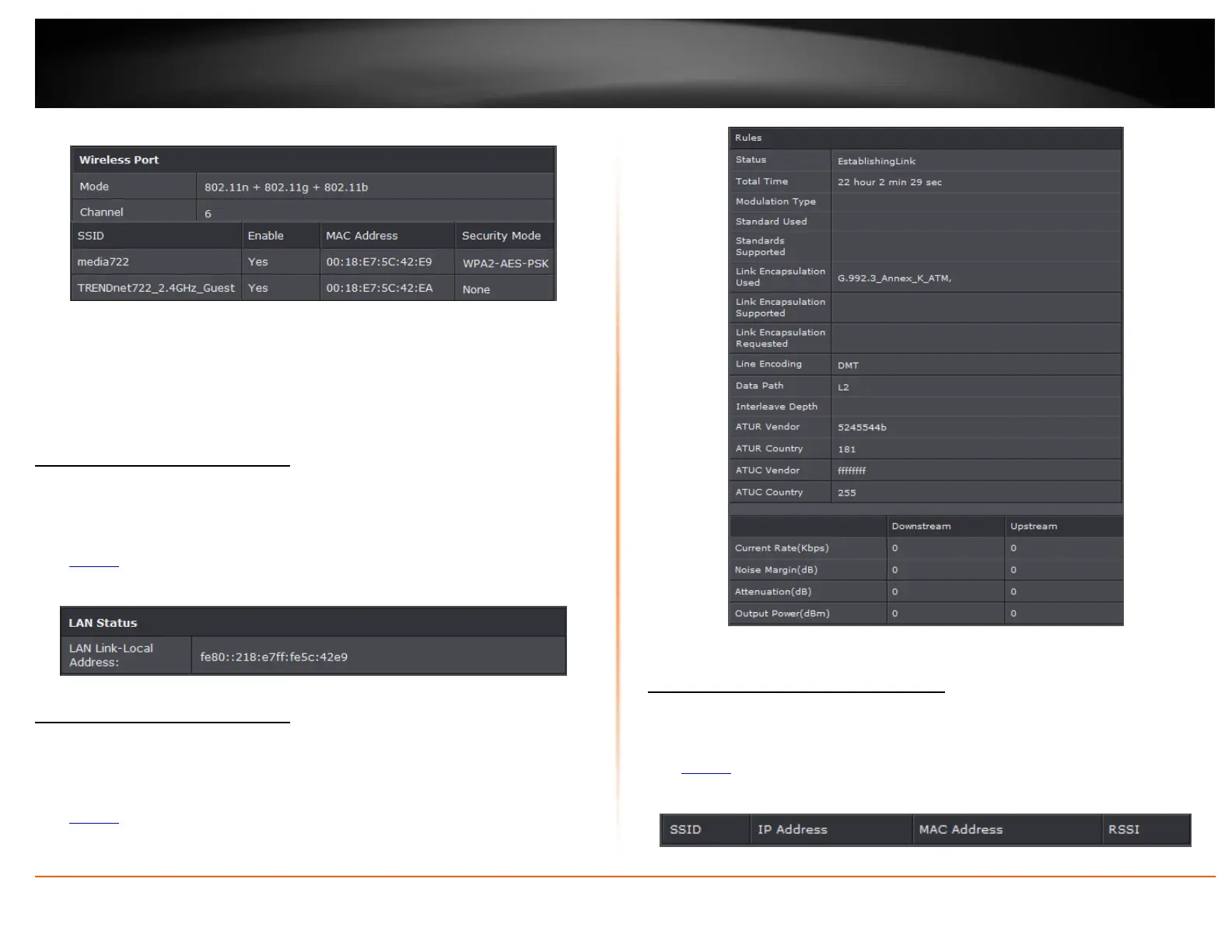 Status > ADSL Info