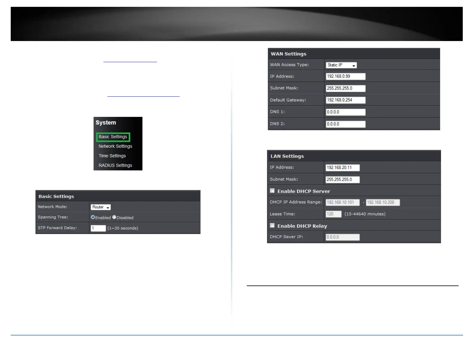 5. Select Enable DHCP Server under LAN Settings section.