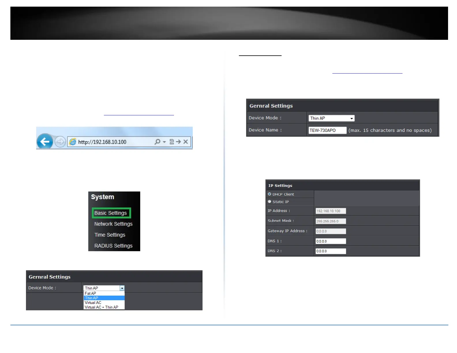Below describes the configuration settings when the TEW-730APO System Mode is set