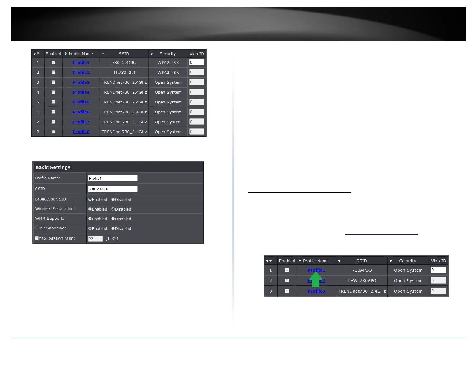 3. Click on the Profile name you would like to apply wireless security.