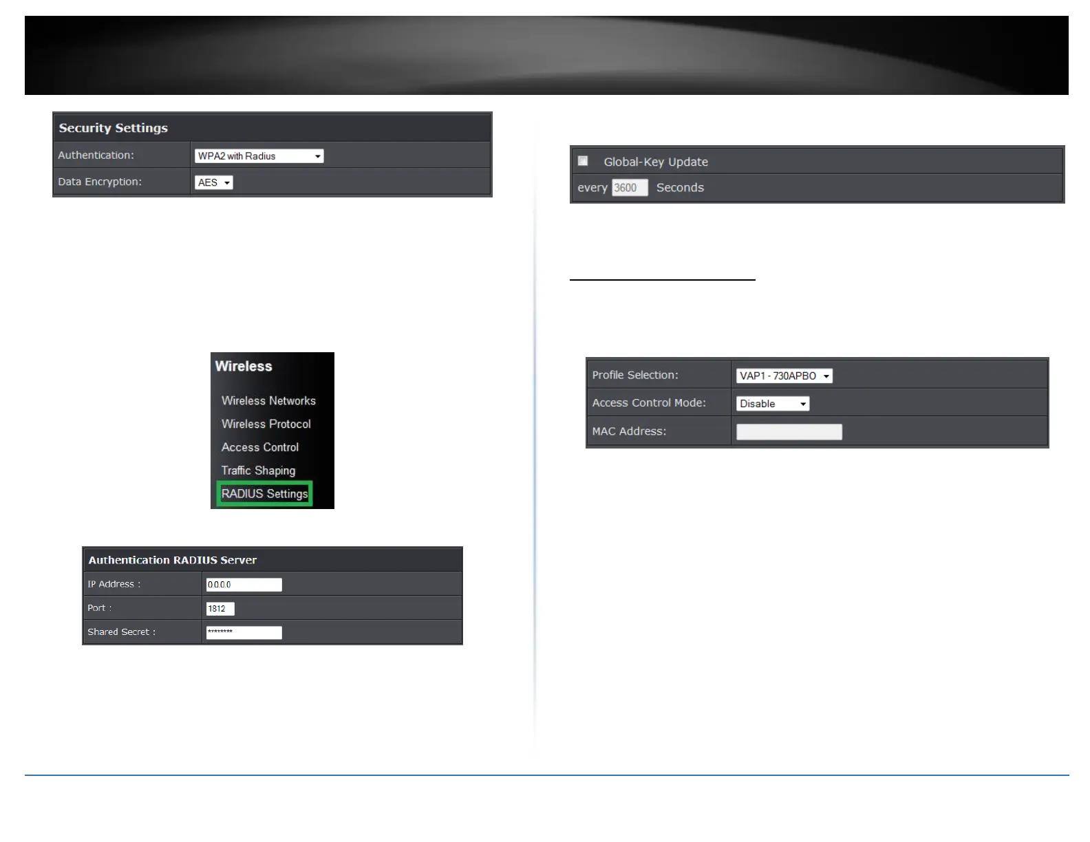 The following section outlines options to configure the access point’s RADIUS settings.