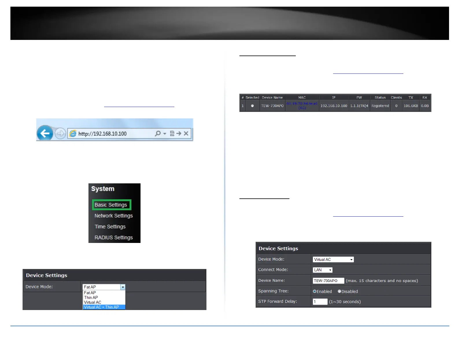 5. Select Virtual AC + Thin AP in the Device Mode drop down menu and Select your