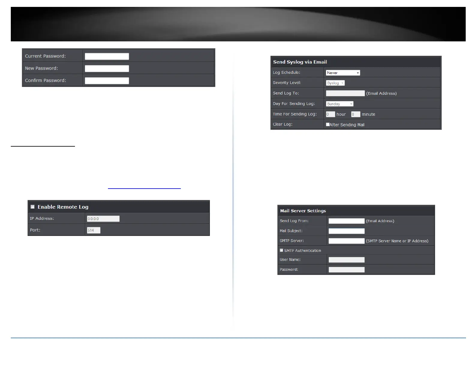 Log Schedule: Select from the pull down menu the schedule to email logs