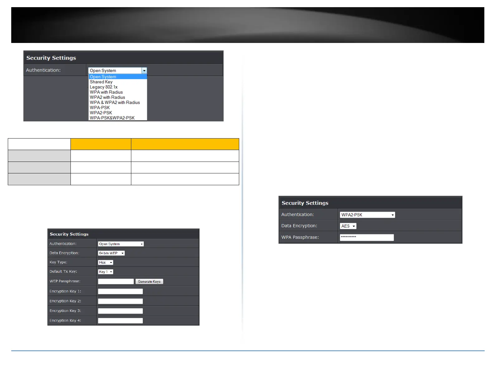 If selecting WEP (Wired Equivalent Privacy), please review the WEP settings to configure
