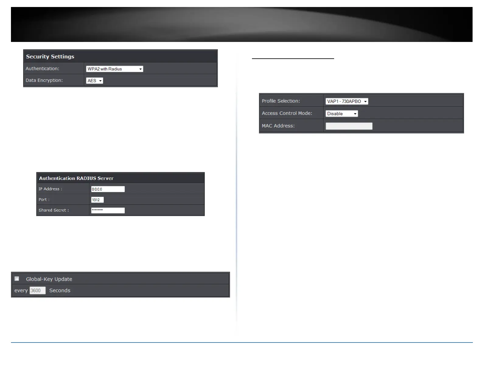 The following section outlines options to configure the access point’s RADIUS settings.