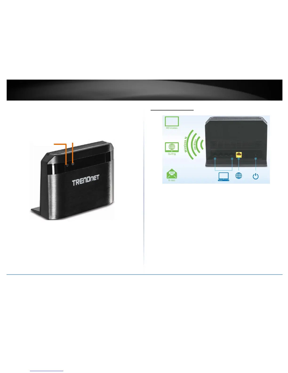 • WPS (Wi-Fi Protected Setup): Push and hold this button for 3 seconds to activate