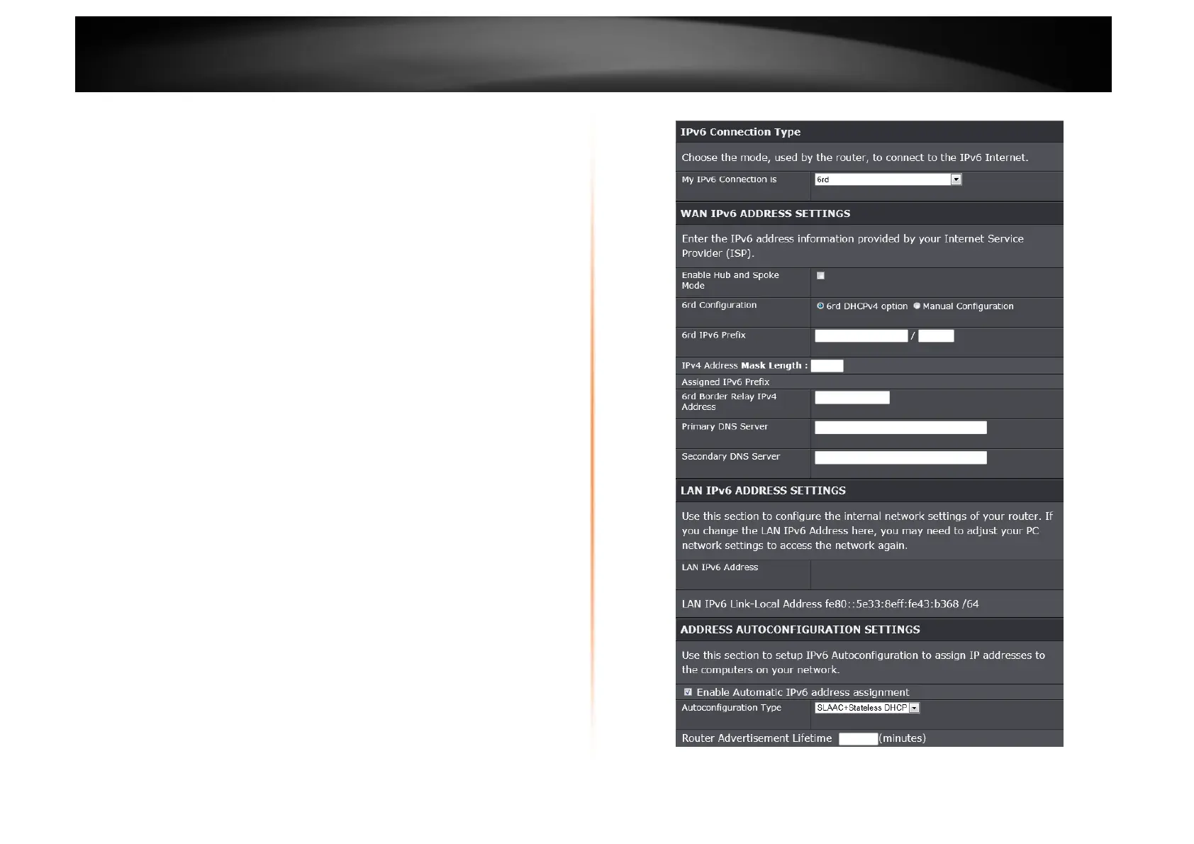 LAN IPv6 Address: Enter the LAN IPv6 address.