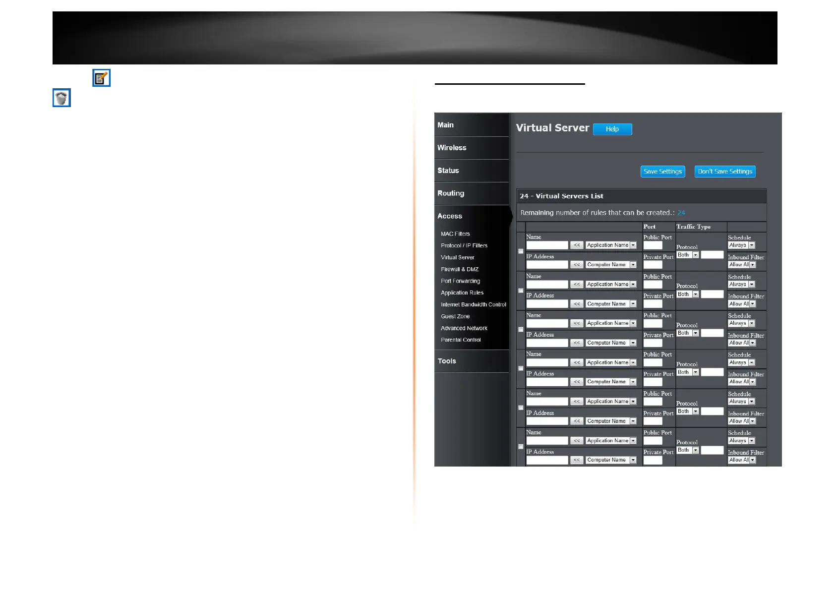 Checkbox: Tick the check box of each entry to enable the selected rule.