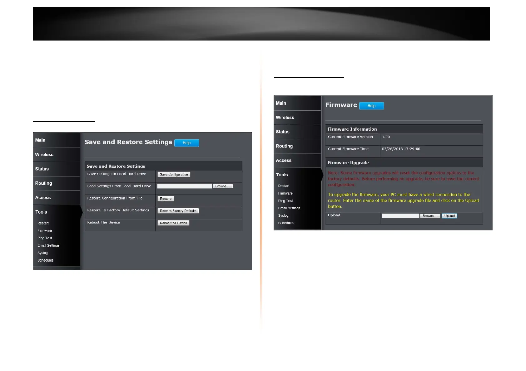 Restore To Factory Default Settings: Click the Restore Factory Defaults
