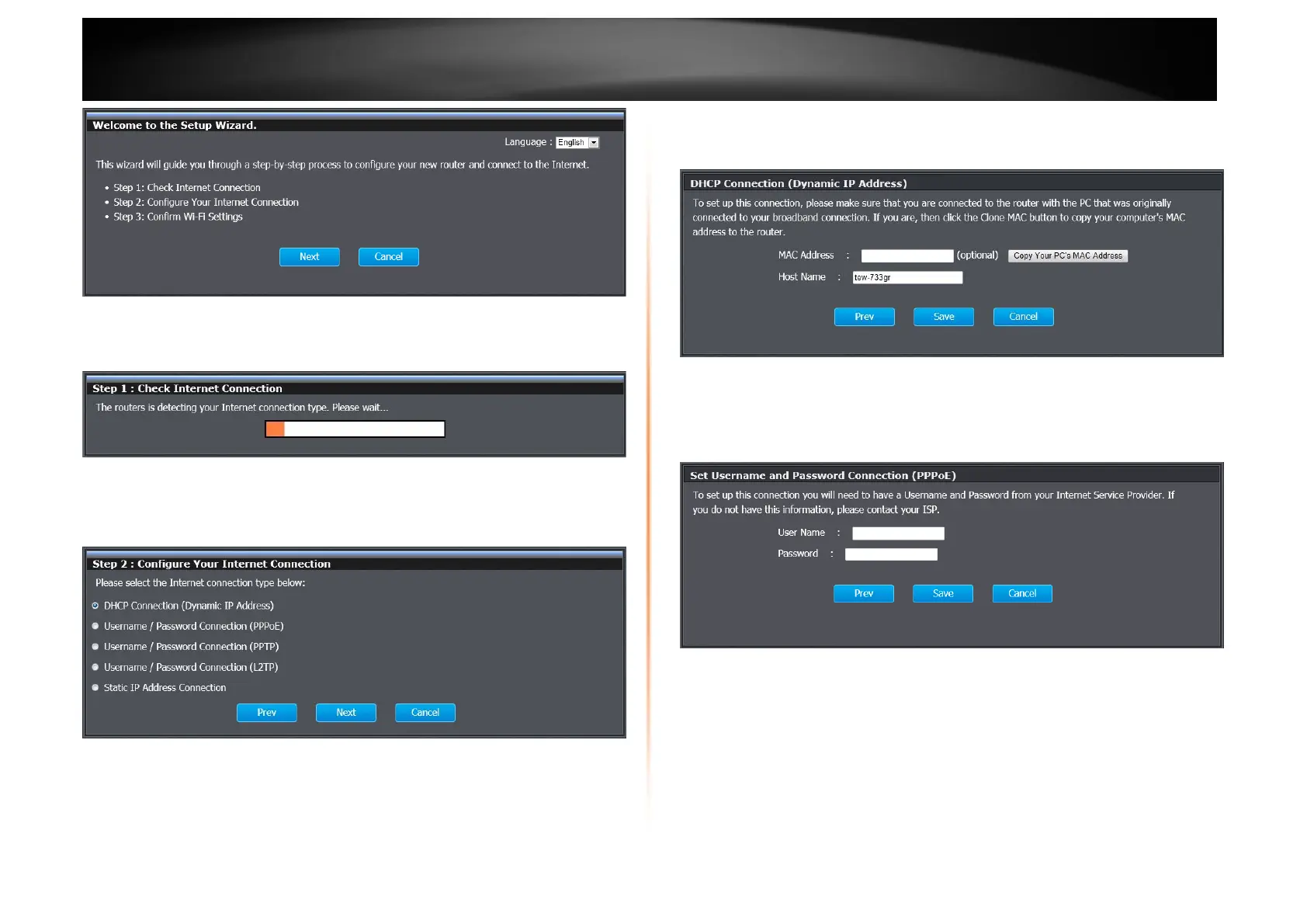Select one of the connection types for the router. Click the radio button and Next