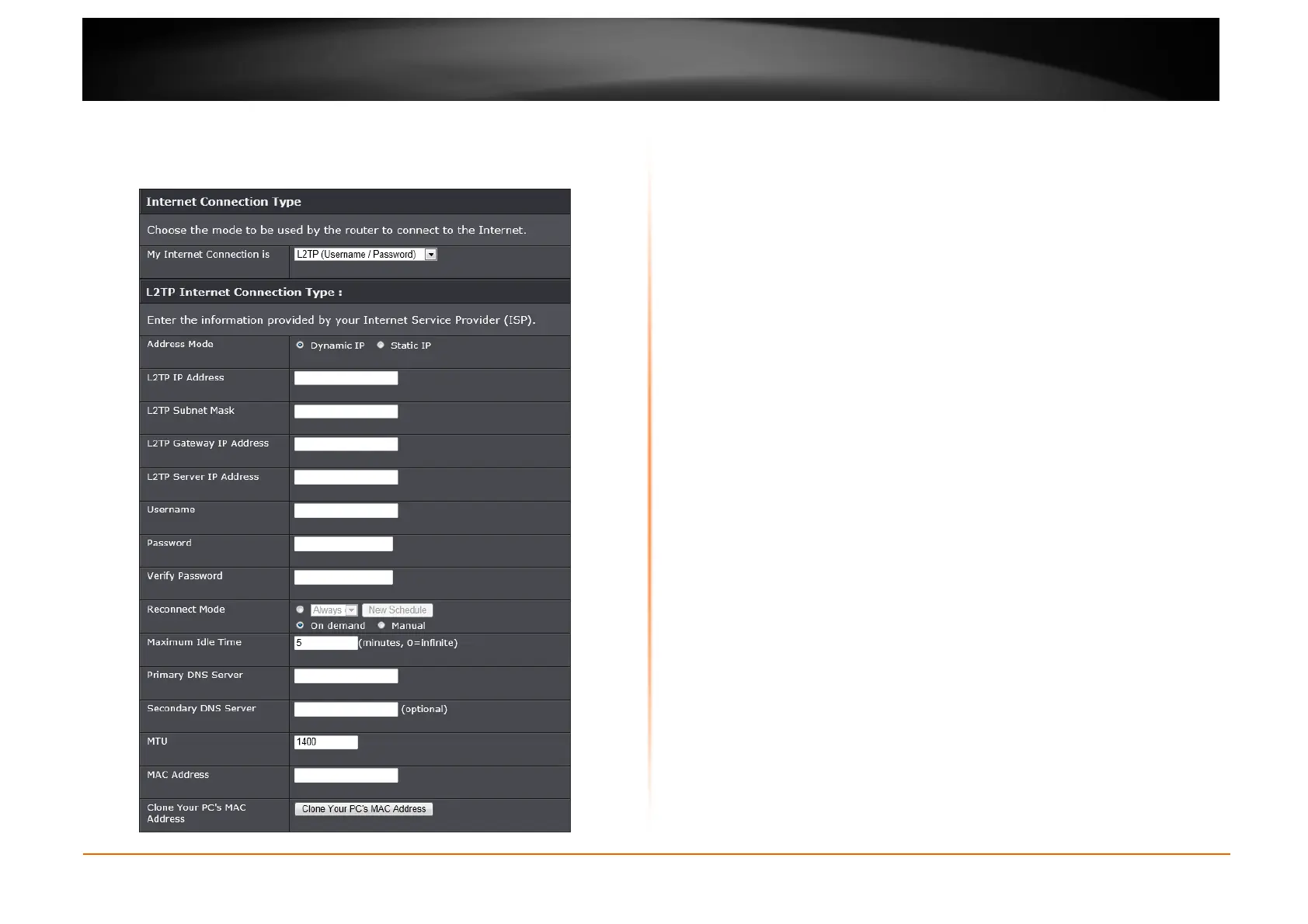 Username: Enter the L2TP user name. This information is given by the ISP.