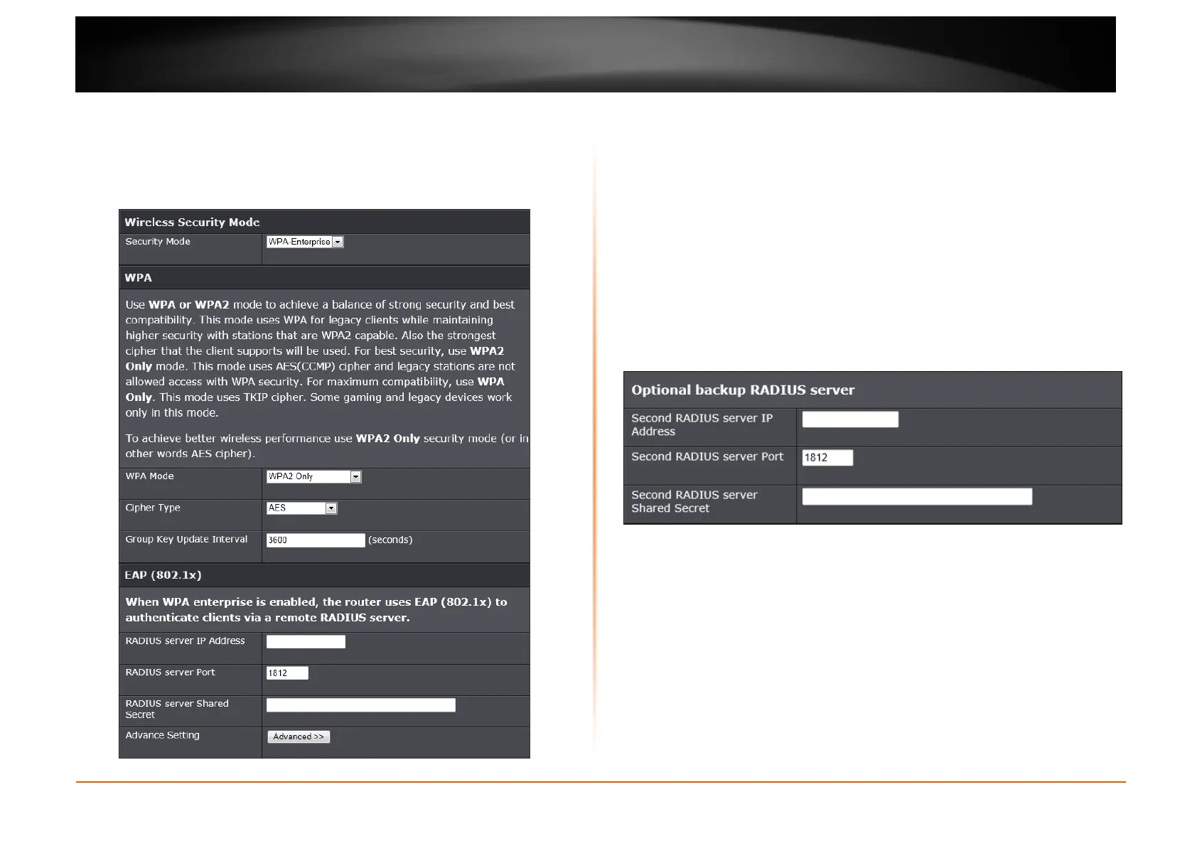 Second RADIUS Server Port: Enter the external RADIUS server port number.