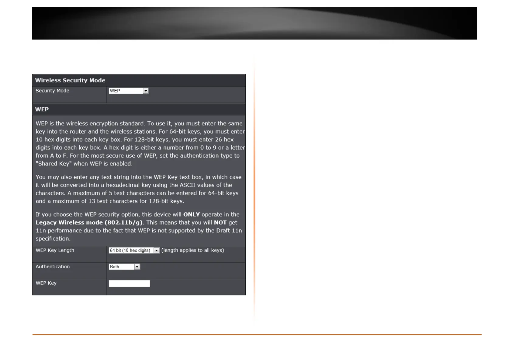 Wireless Security Mode – WEP
