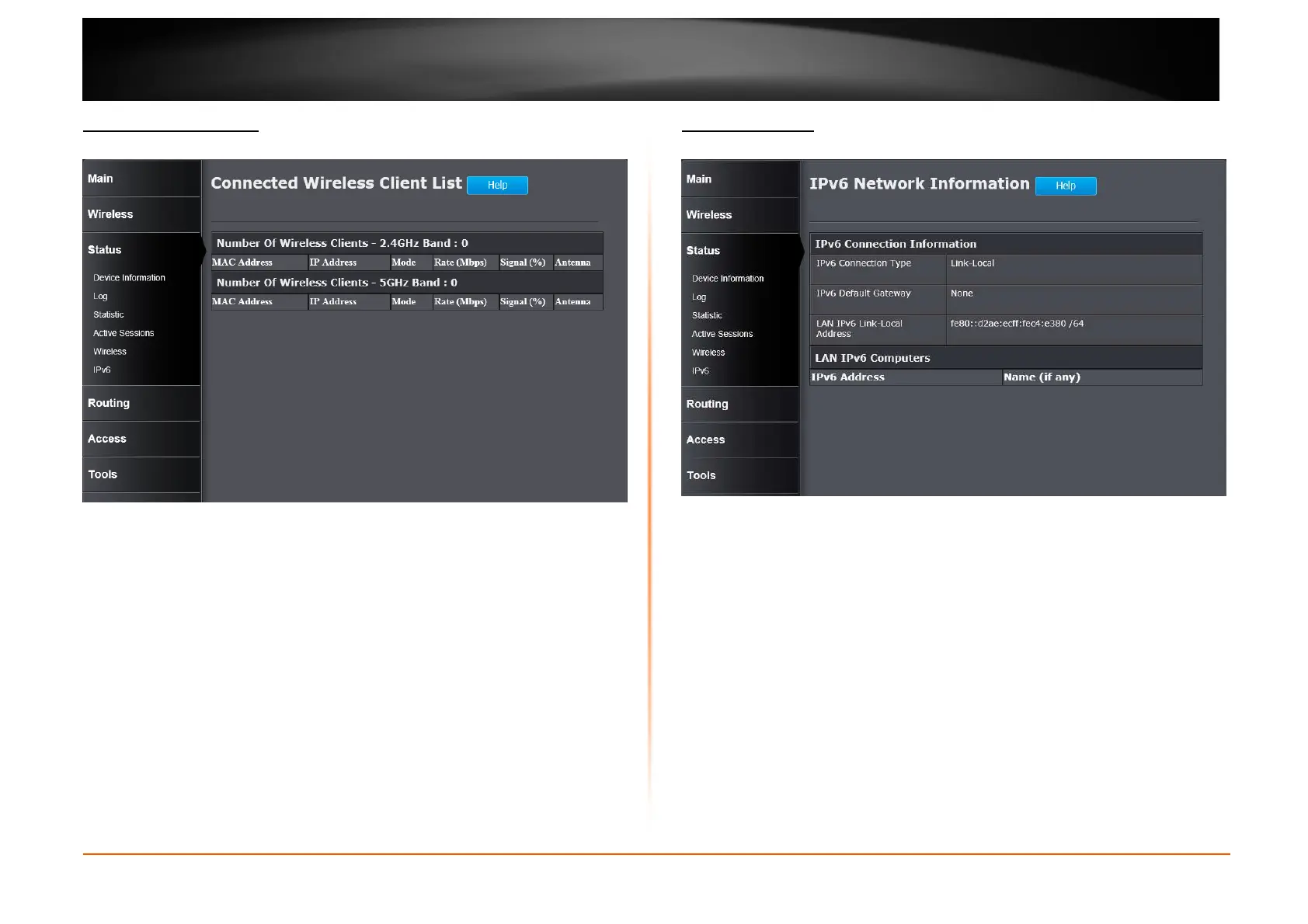 TRENDnet TEW-752DRU - Status > Wireless; Status > Ipv6