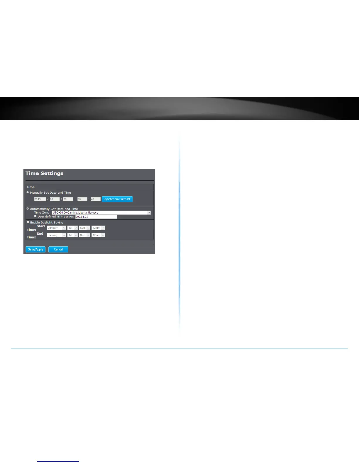 dened NTP Server and Enter the NTP server IP address.