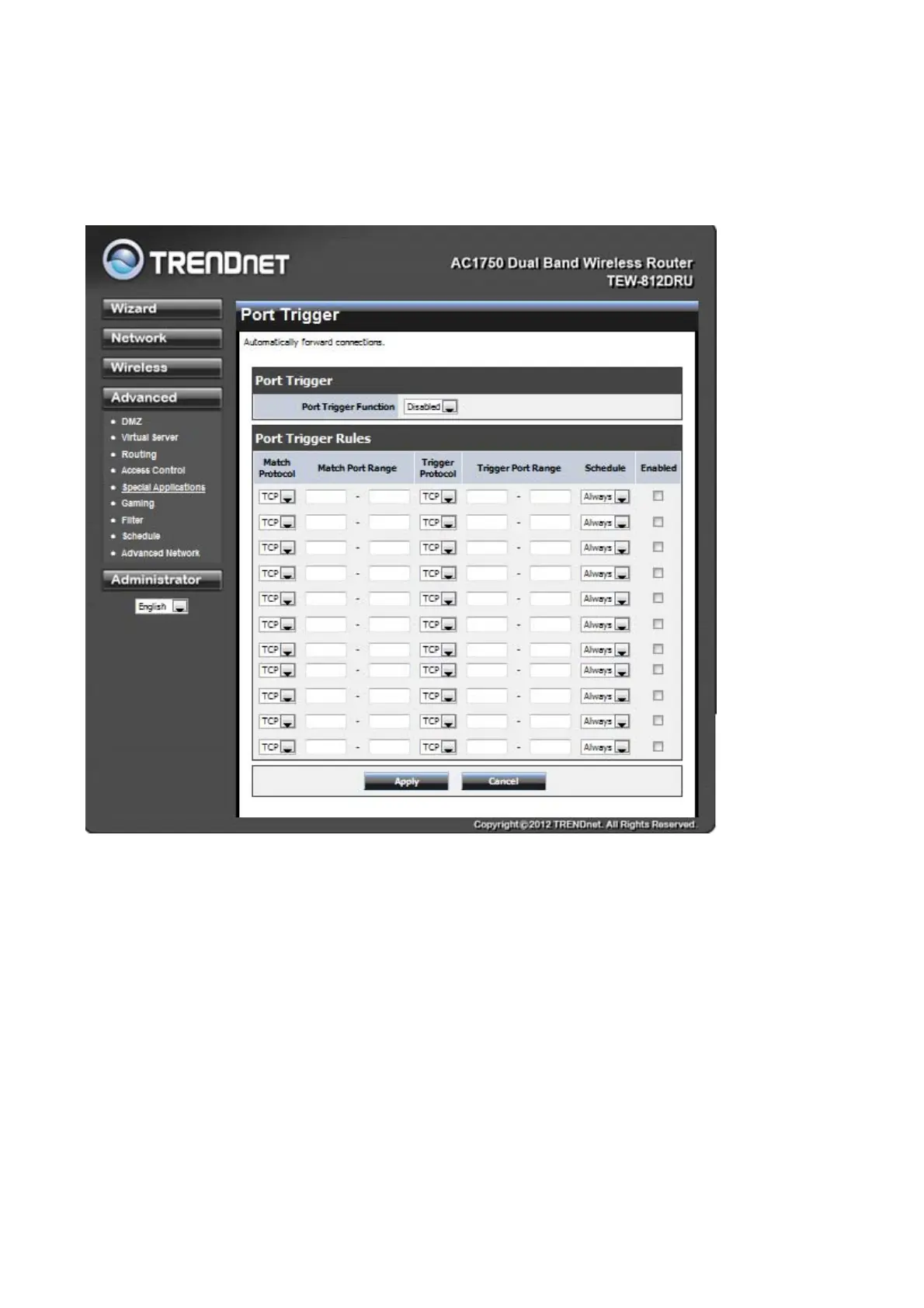 Add/Edit Port Trigger Rule