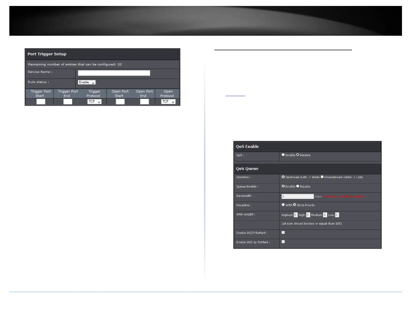 This page allows you to enable QoS and choose Differentiated Services Code Point