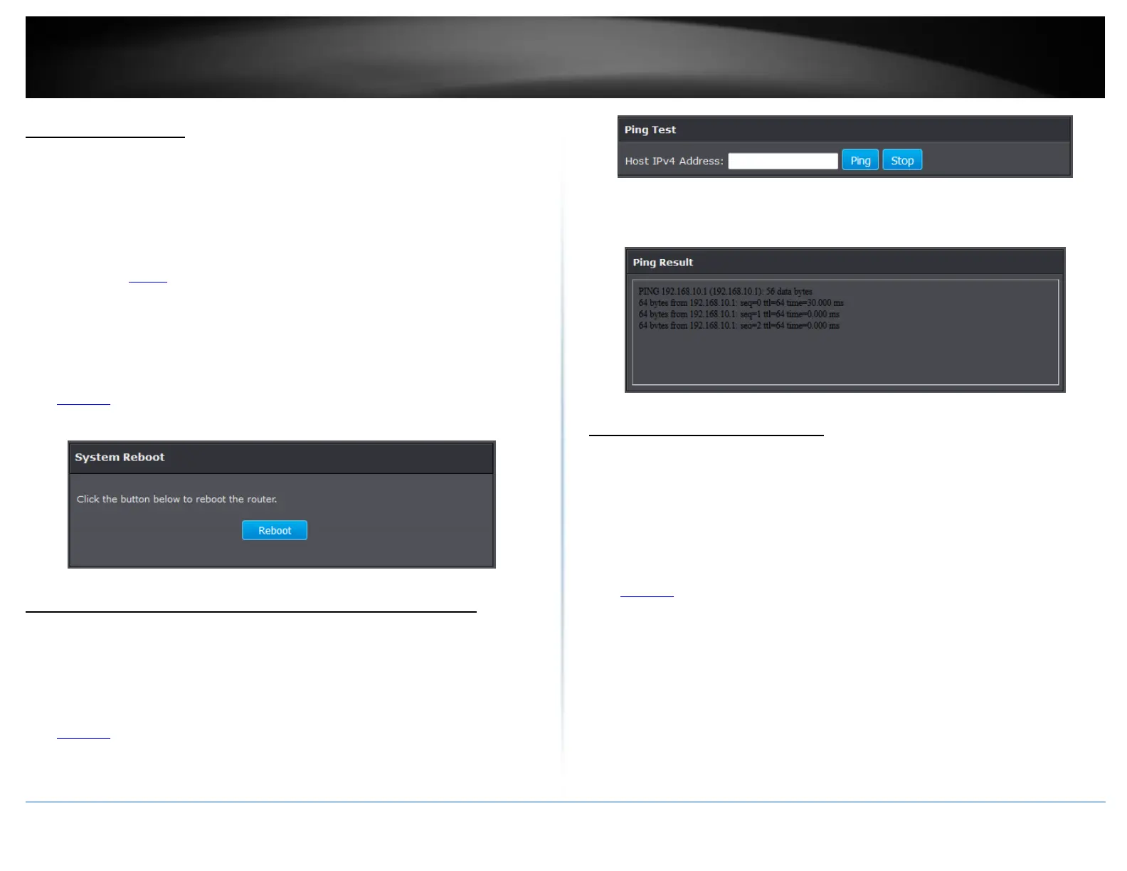 ping (also known as a network connectivity test) test tool on your router management