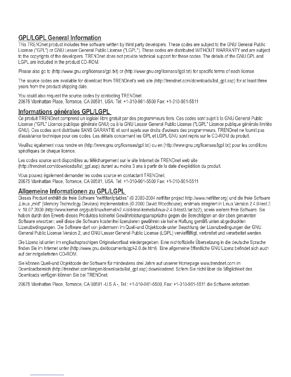 (http://trendnet.com /dow nloads/list_gpl.asp) durant au m oins 3 ans a partir de la da te d'expedition du produit.