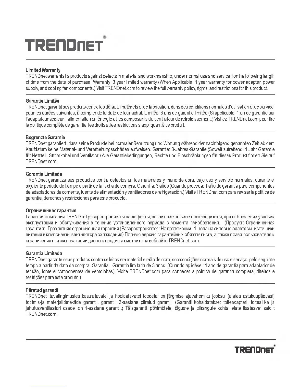 supply, and cooling fan com ponents.) Visit TREN Dnet.com to review th e full w arran ty policy, rights, and restrictions fo r th is product.