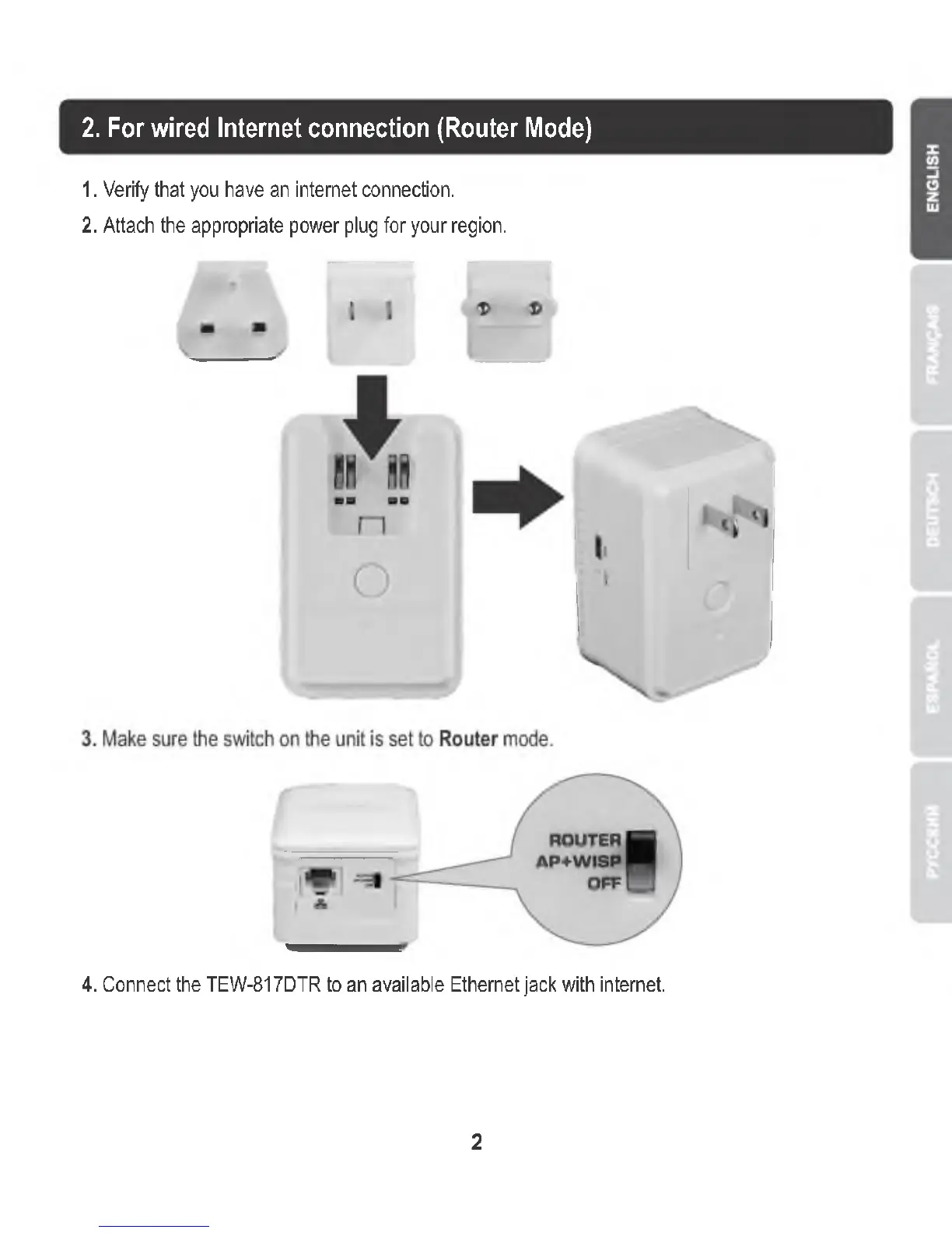 2. For wired Internet connection (Router Mode)