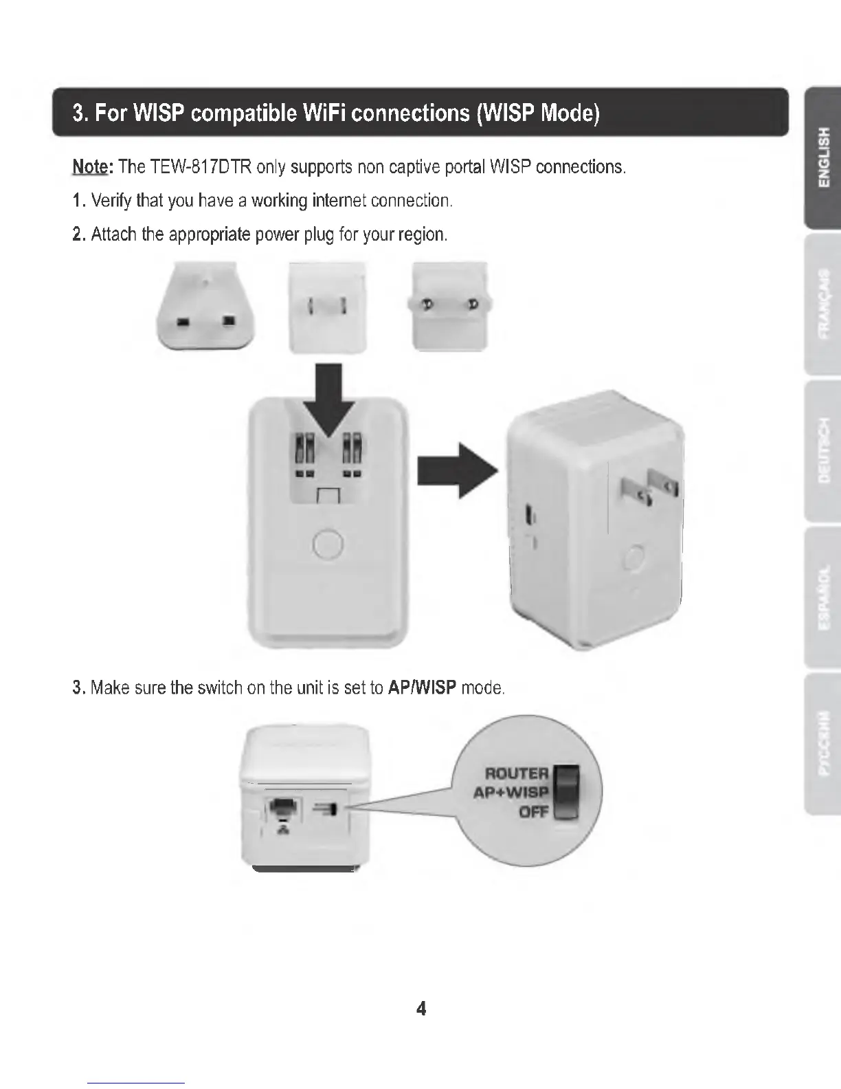 Note: The TEW-817DTR only supports non captive portal WISP connections.