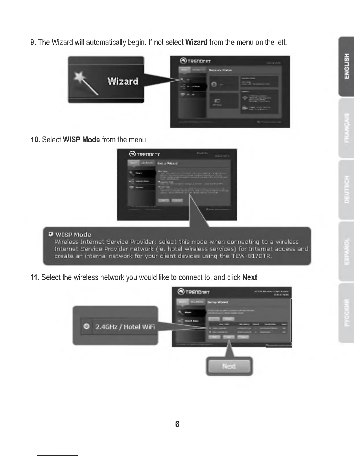 TRENDnet TEW-817DTR - Creating a Network; How to setup your device in router mode; How to setup your device in AP;WISP mode