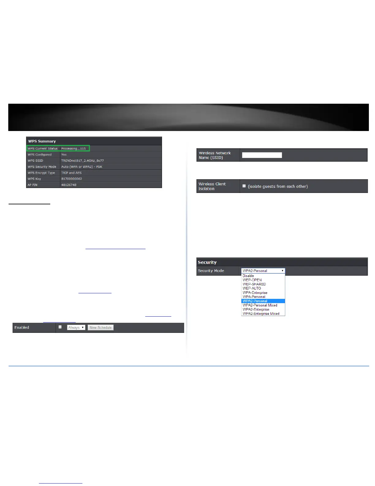 correct and you have defined a schedule. See page 29 to configure Time Settings and