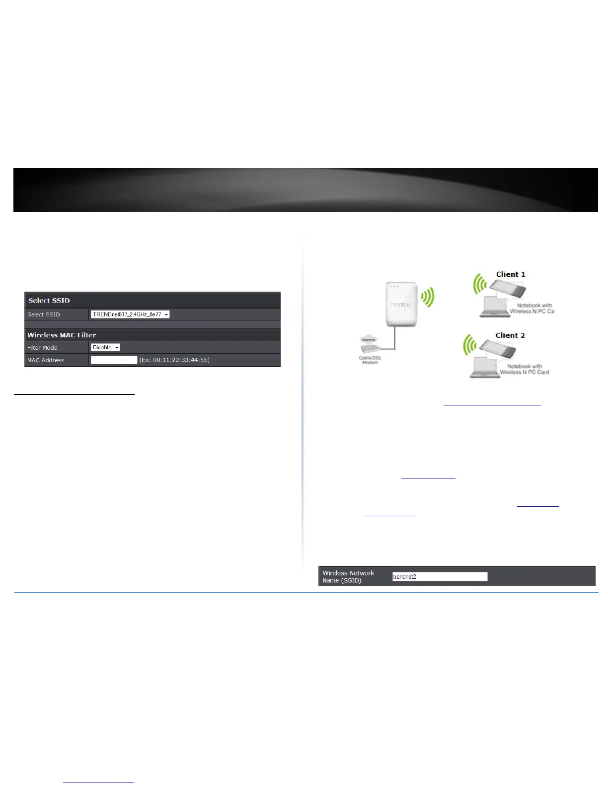 The multiple SSID feature allows you to broadcast up to 3 SSIDs (or wireless network