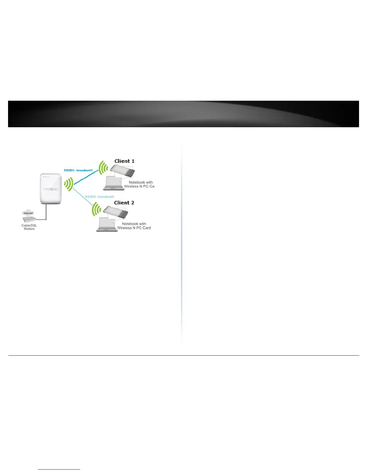 The diagram shows an example of a client connecting to SSID 1 and another client