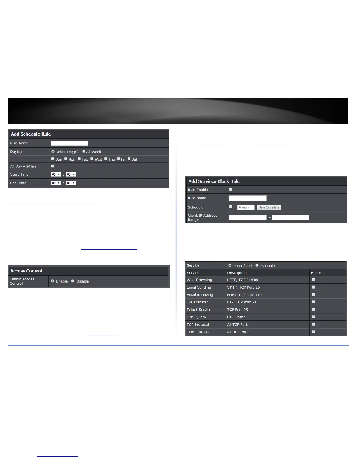 the access control filter should be turned on. T To define a new schedule, click