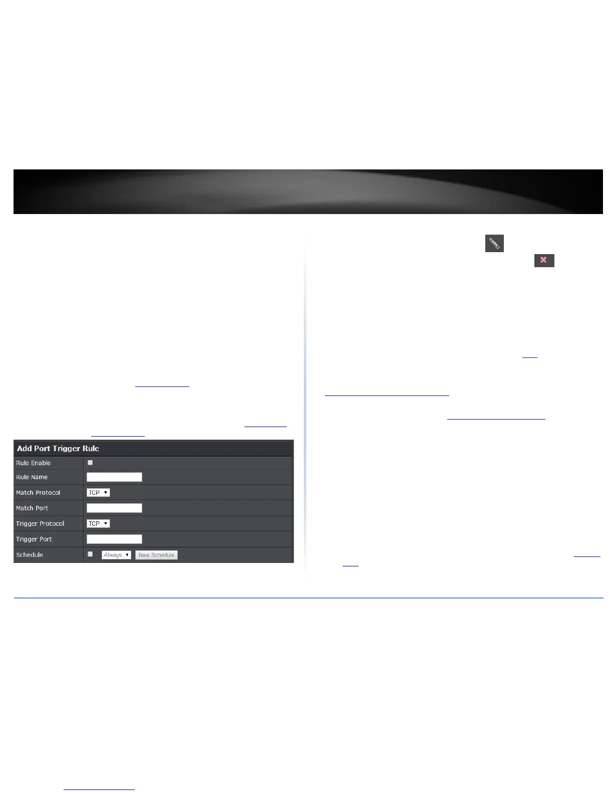 the port trigger should be turned on. To define a new schedule, click New