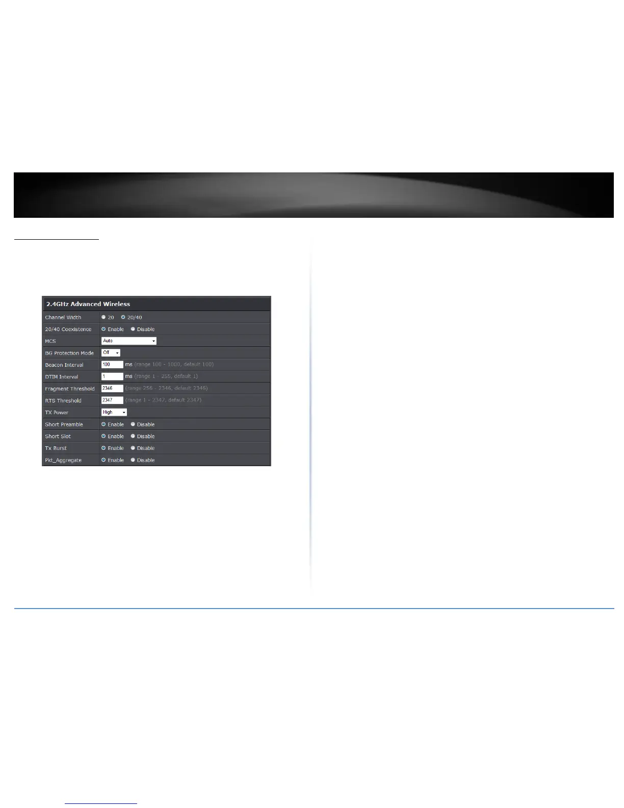Advanced > Wireless (2.4GHz or 5GHz) > Advanced