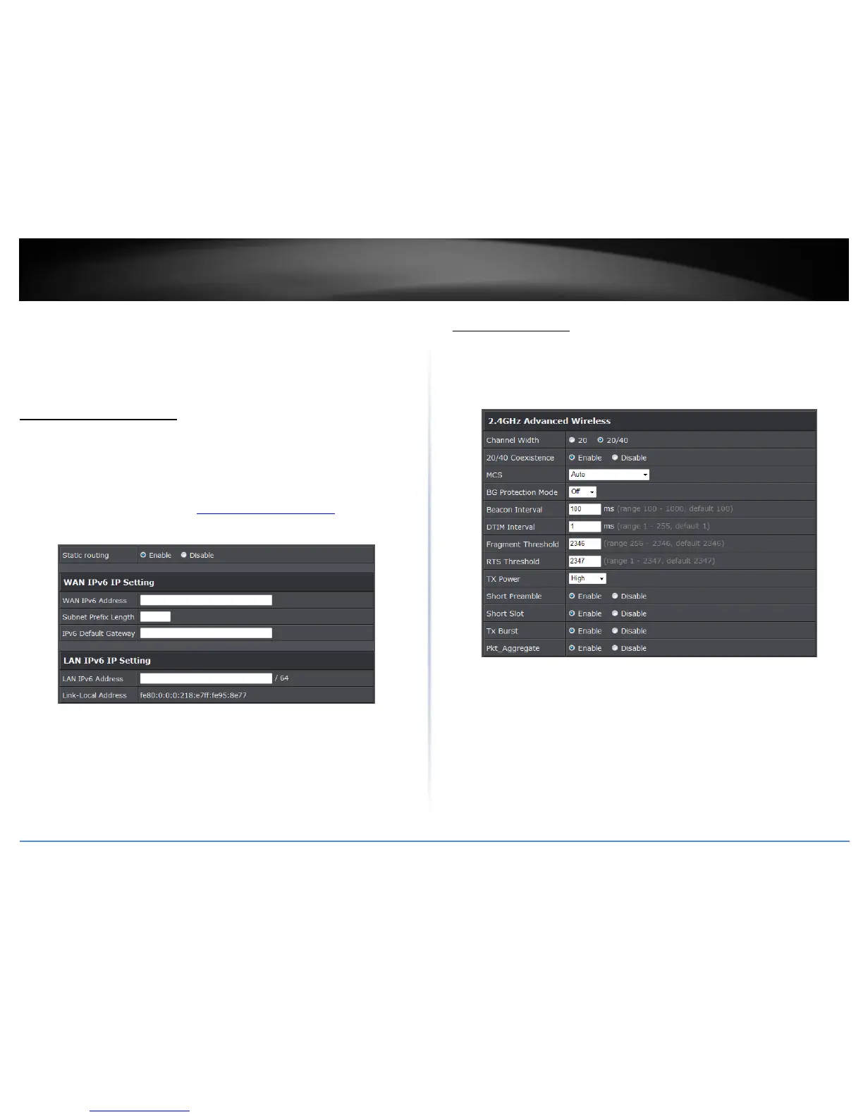 Static Routing: Select enable to configure IPv6 settings.
