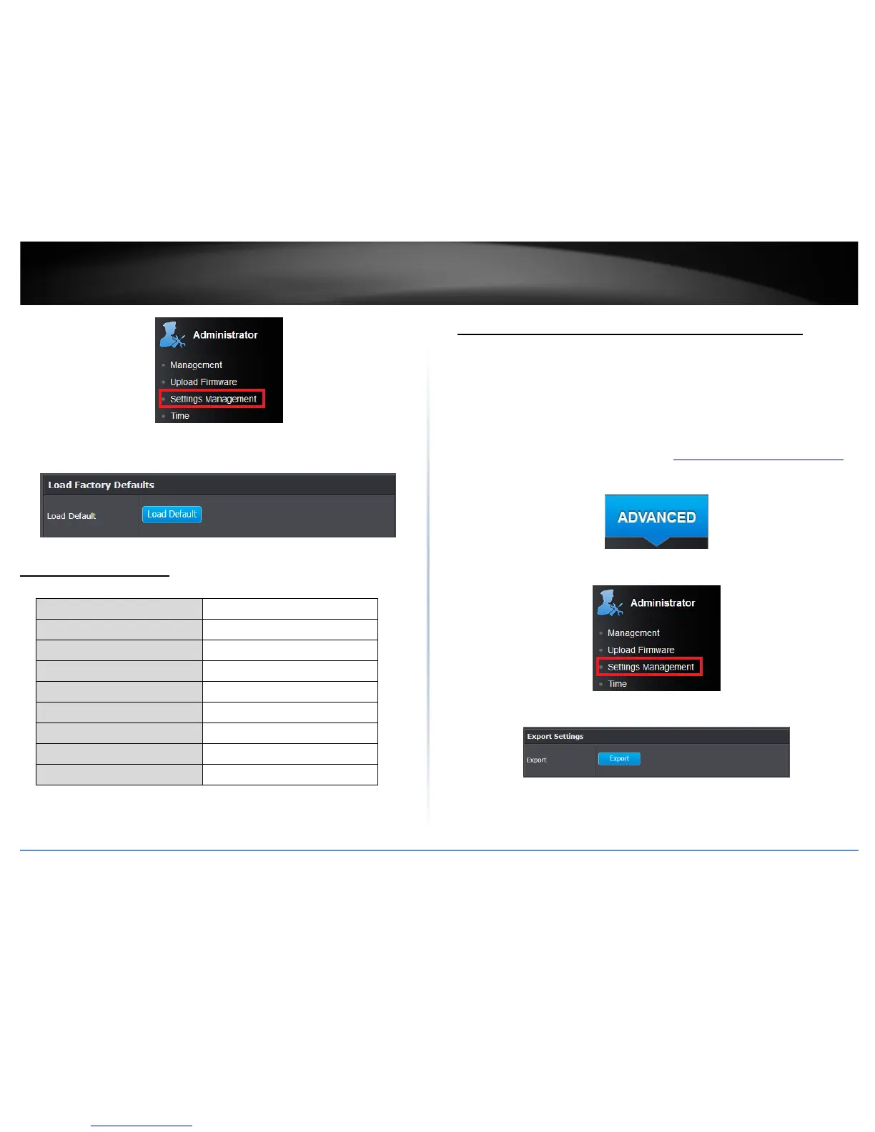 4. Under Load Factory Default, click Load Default. When prompted to confirm this