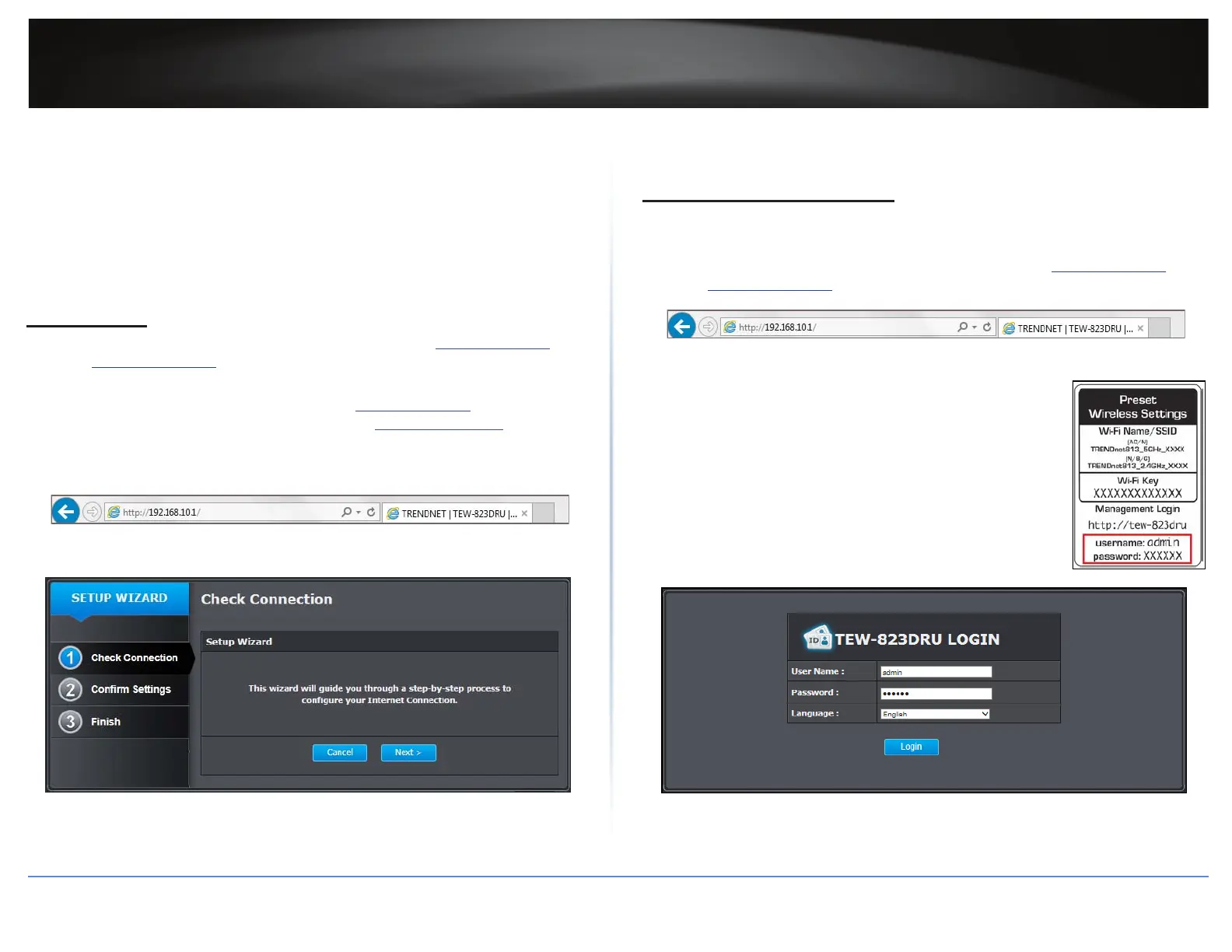 1 Open your web browser and enter the URL/domain name hp://tew-823dru or IP