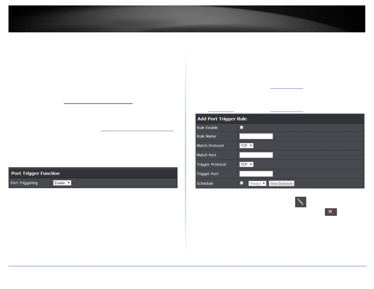 when the port trigger should be turned on. To define a new schedule, click New