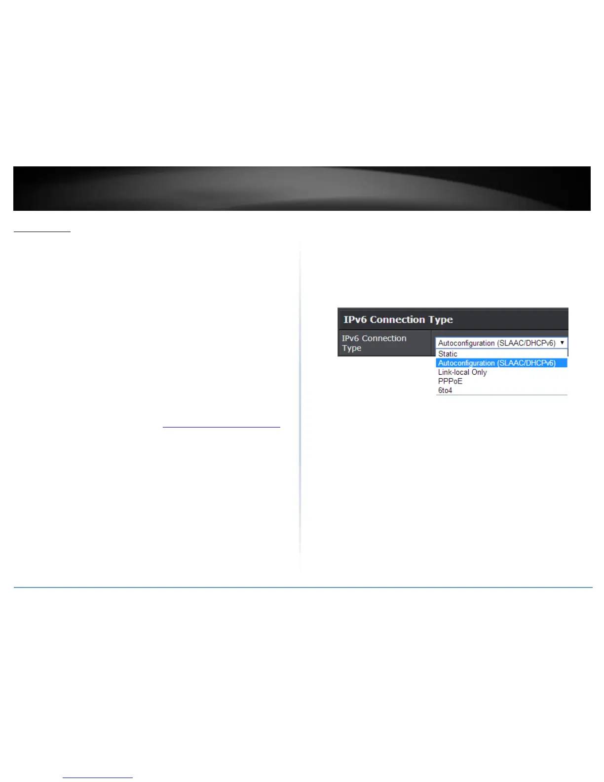 Note: In order to use IPv6 Internet connection settings, it is required that your ISP